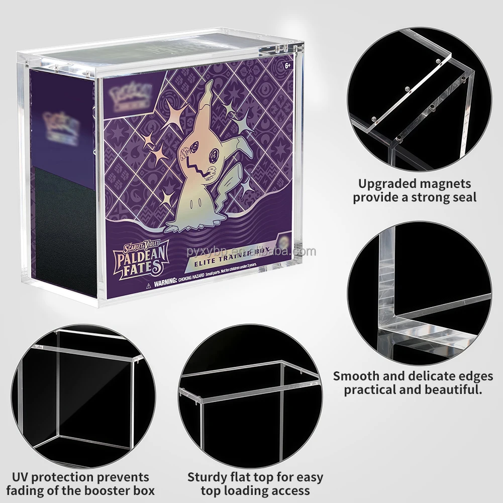 Custom 99% UV Resistant Acrylic Etb Case Pokemon Elite Trainer Box Display Booster Box Protective Storage Magnetic Lid Holder